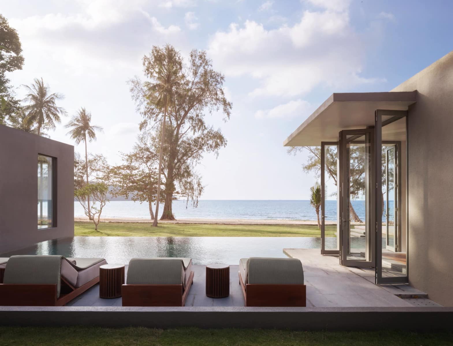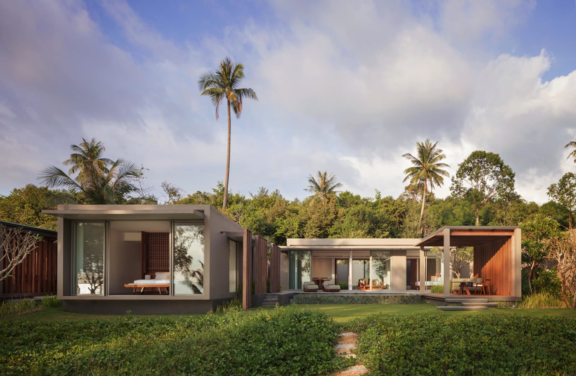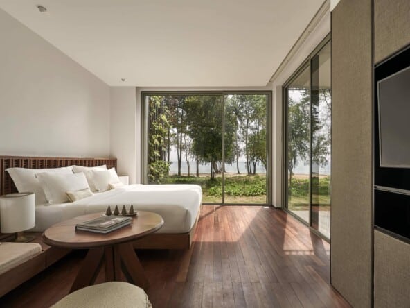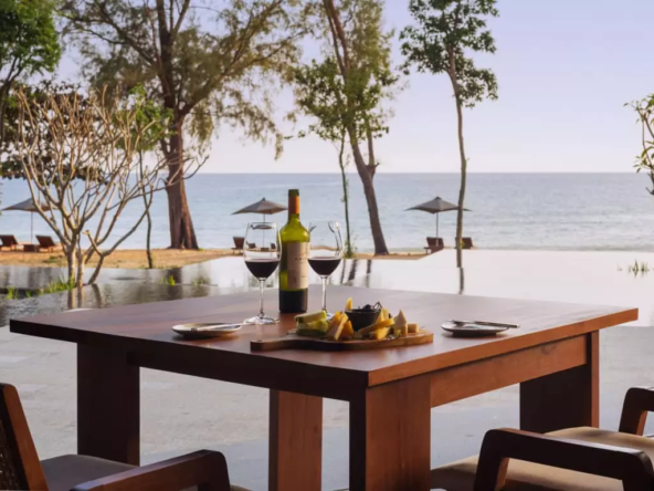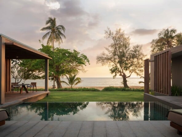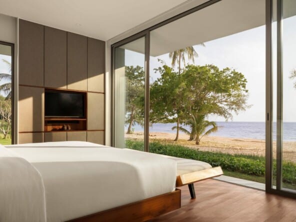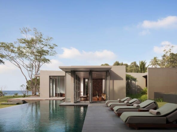The property includes 13 villas with private pools, a beachfront infinity pool, two restaurants, a beach bar, a spa with treatment rooms for couples, a 24-hour fitness area, and a yoga pavilion. Guests can enjoy water and land activities such as kayaking, paddleboarding, snorkeling, and local excursions to nearby cultural sites.