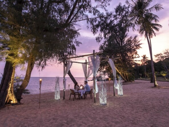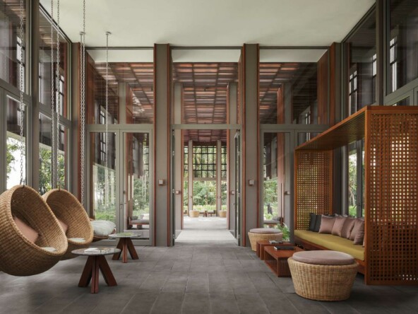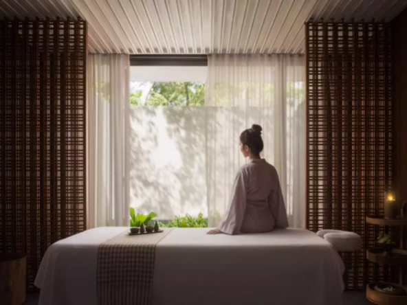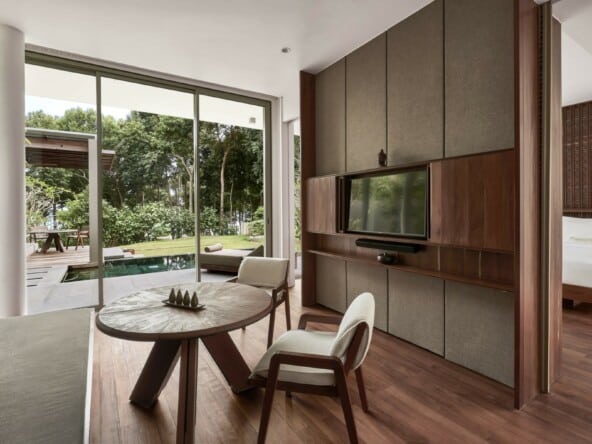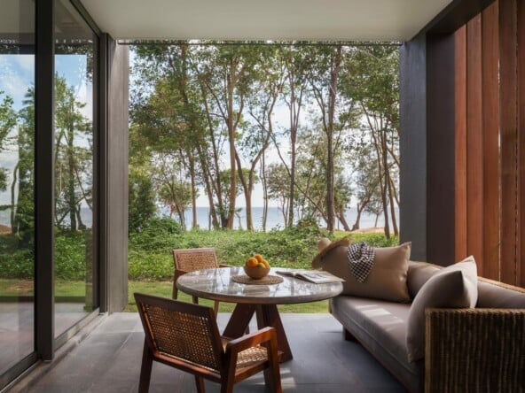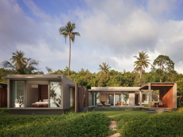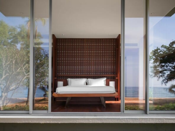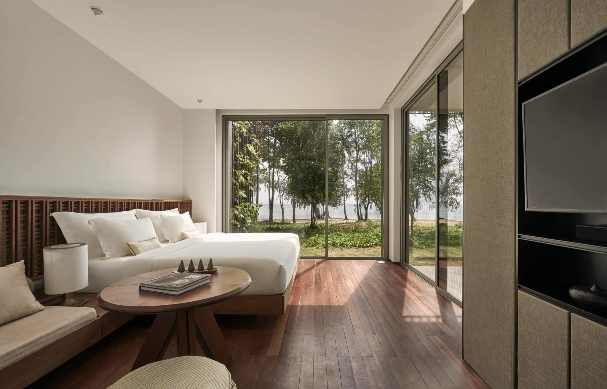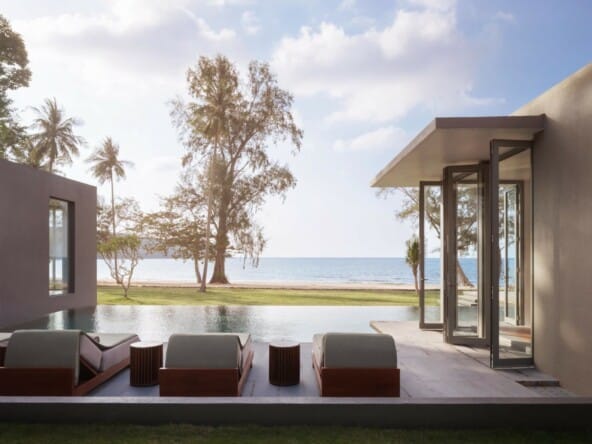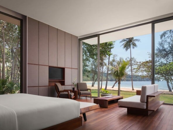 The property includes 13 villas with private pools, a beachfront infinity pool, two restaurants, a beach bar, a spa with treatment rooms for couples, a 24-hour fitness area, and a yoga pavilion. Guests can enjoy water and land activities such as kayaking, paddleboarding, snorkeling, and local excursions to nearby cultural sites.