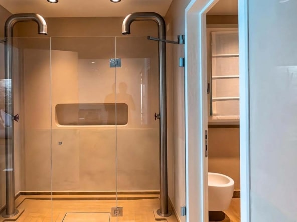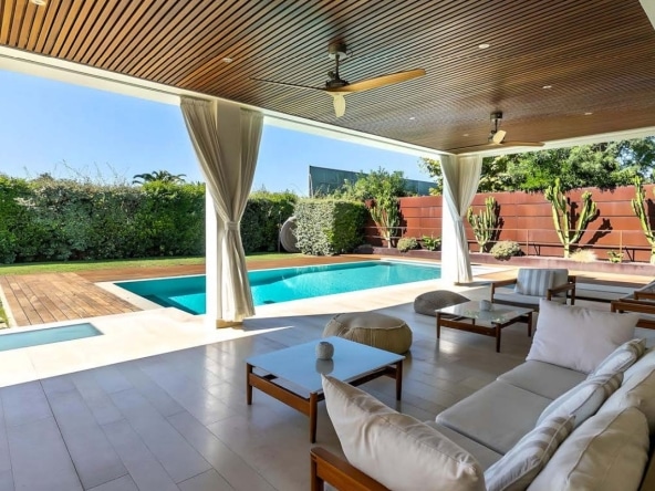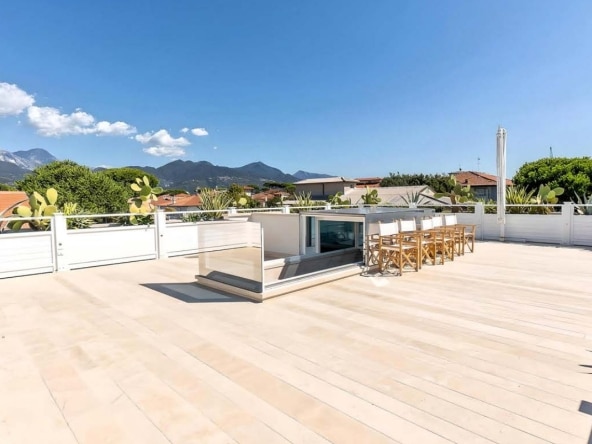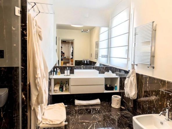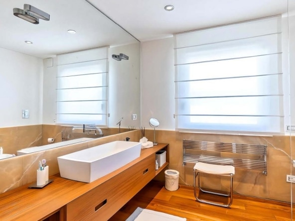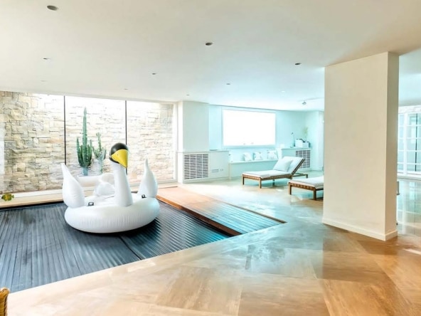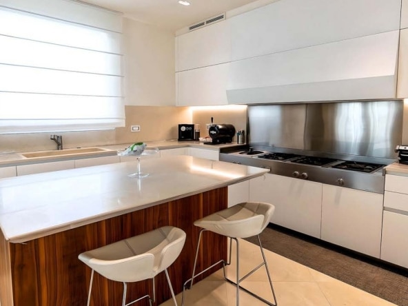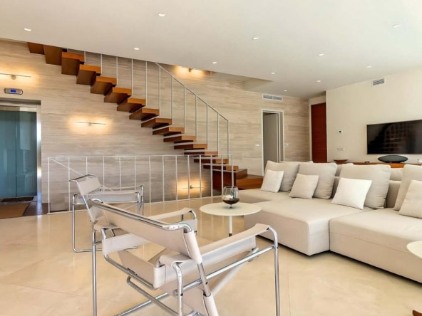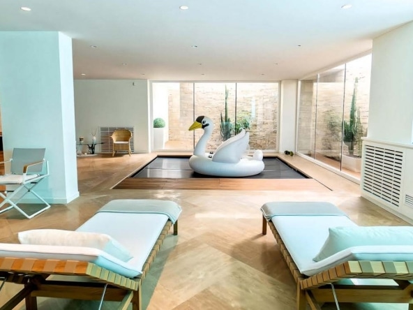 Designed by a renowned landscape architect, the 1,500 sqm private garden is an oasis of peace and beauty. The elegant outdoor area includes a stunning swimming pool, high-quality sun loungers, and two large al fresco dining tables, perfect for outdoor meals or summer gatherings.