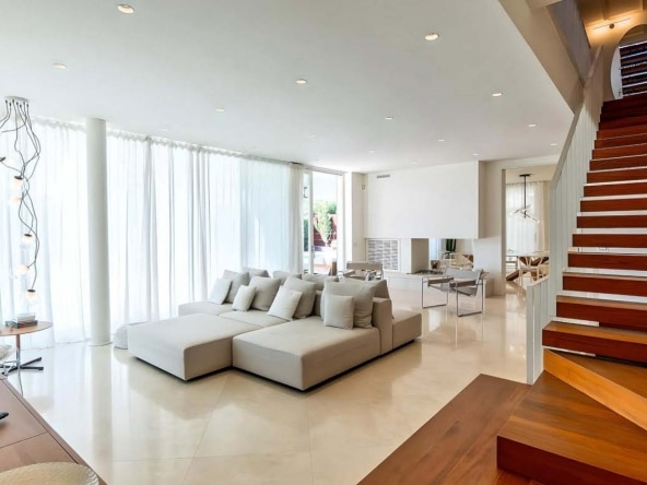 Villa Oceano Blue showcases modern coastal architecture, emphasizing light, space, and comfort. Large windows flood the interiors with natural light, while high-end finishes, neutral tones, and custom furnishings create an atmosphere of understated sophistication.