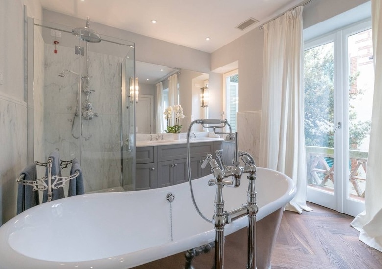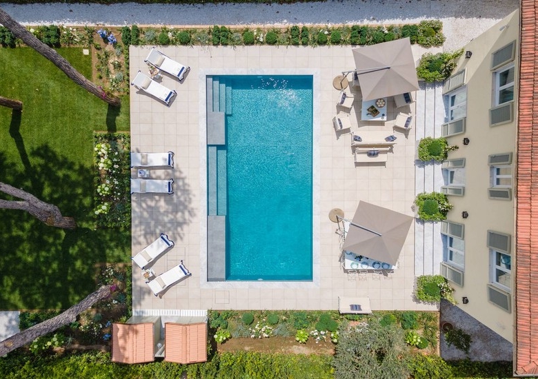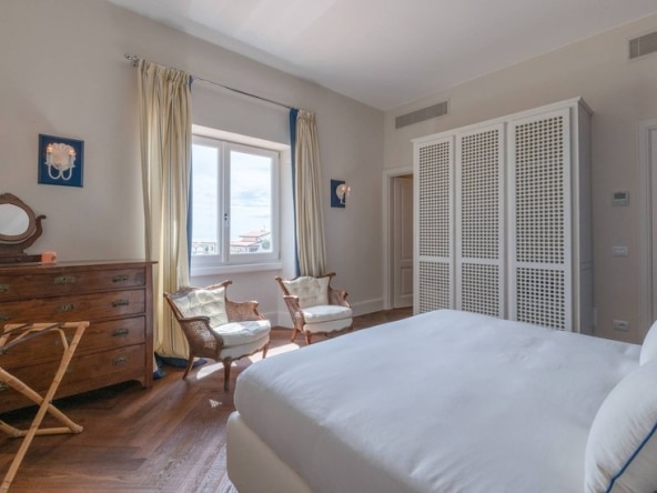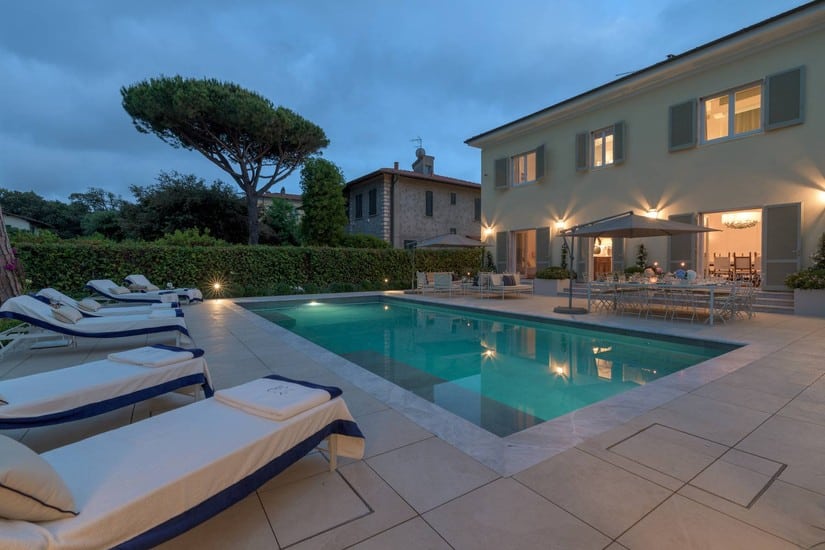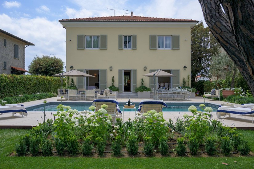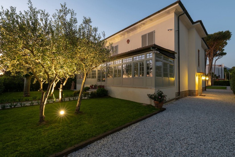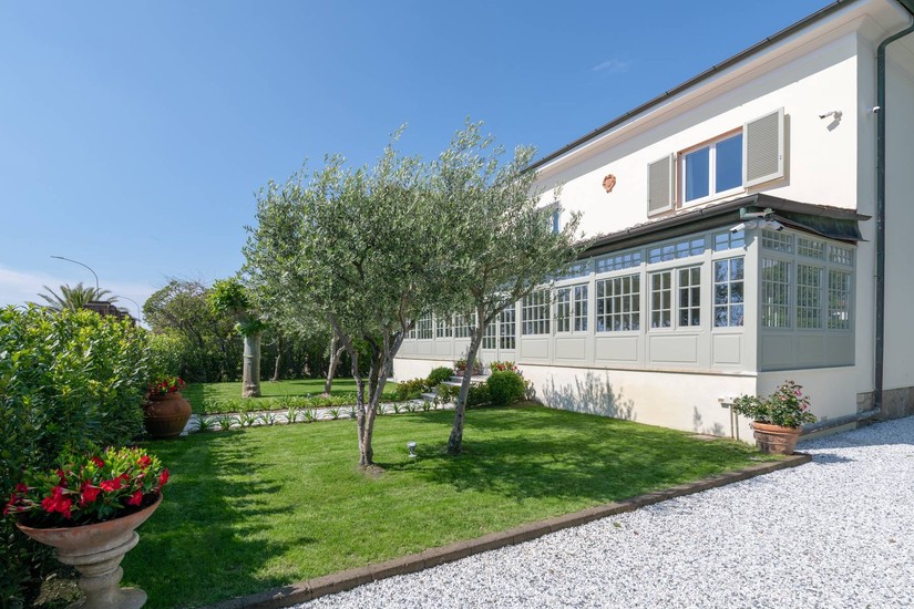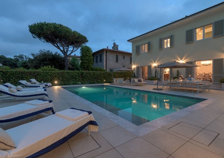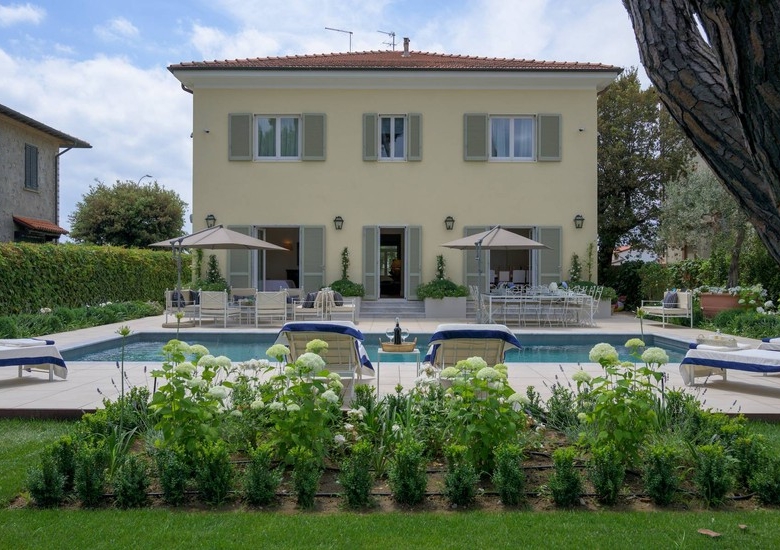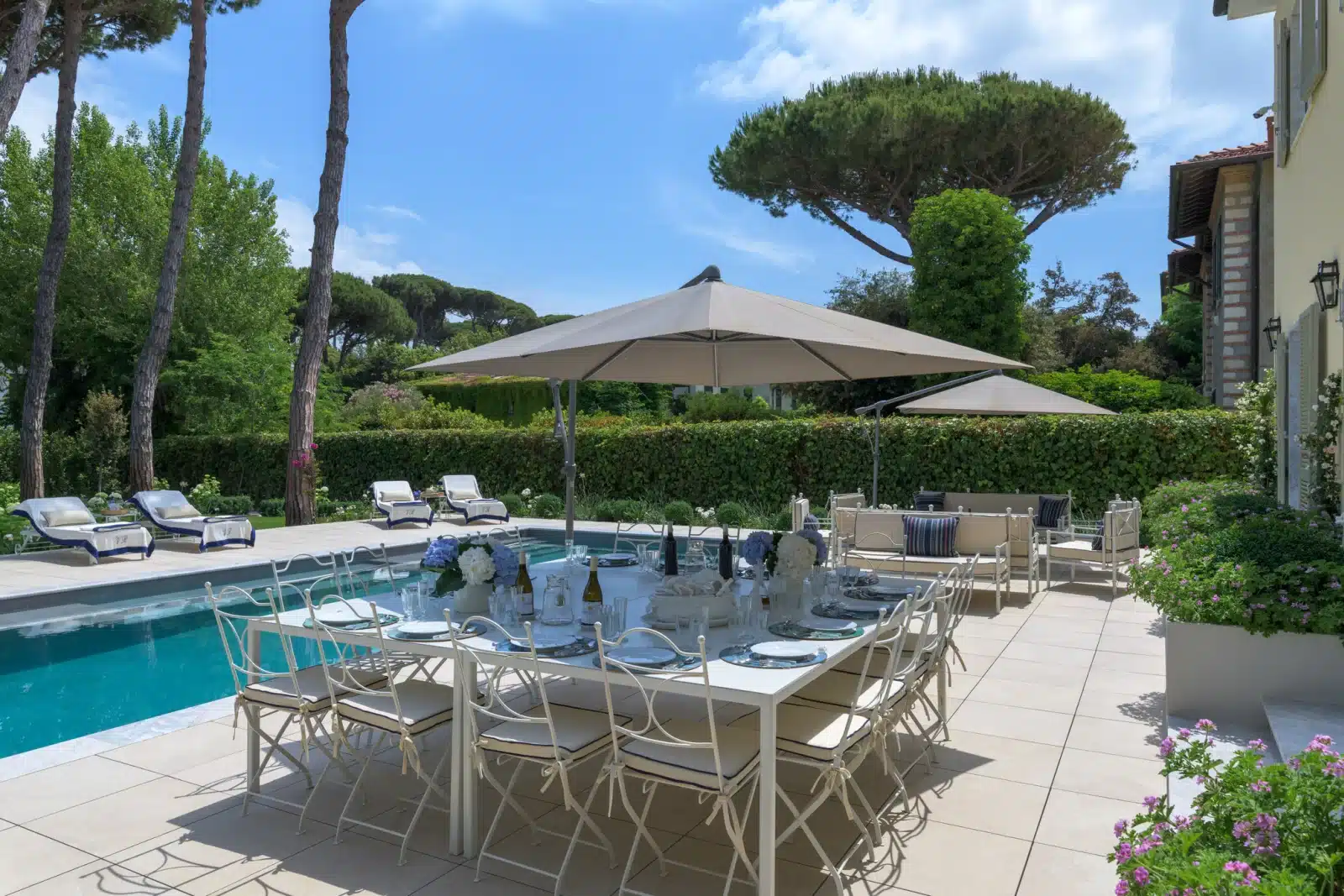 Villa Romana is an elegant seaside residence in the exclusive Roma Imperiale area of Forte dei Marmi. The recently renovated property blends modern design with classic Tuscan charm, offering seven bedrooms, six bathrooms, a landscaped private garden, and a swimming pool. Its position just steps from the sea provides both privacy and convenience.