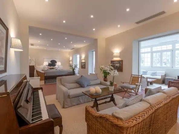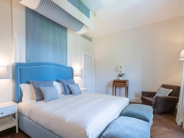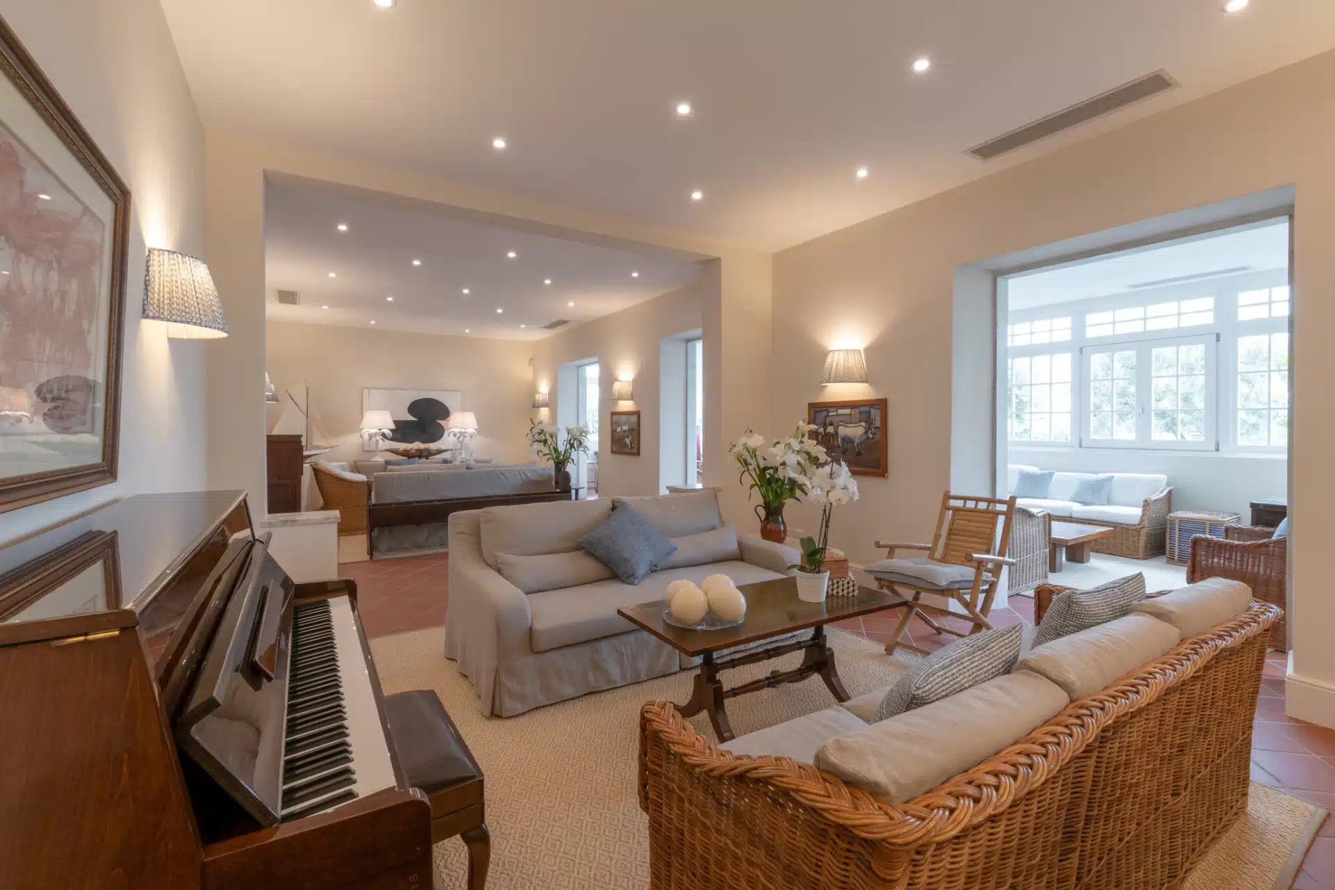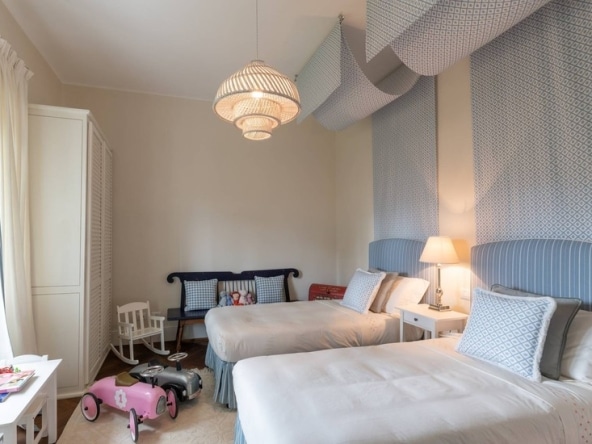Each of the seven bedrooms is spacious and tastefully furnished, with private bathrooms featuring elegant finishes. One bedroom on the ground floor provides direct access to the garden, offering additional comfort and privacy.