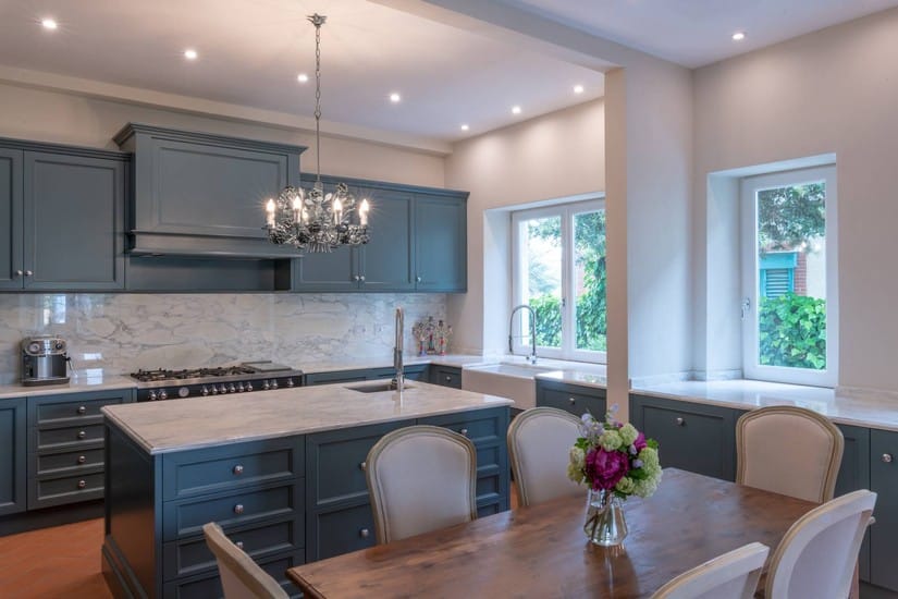 The modern kitchen is equipped with quality appliances and designed for functionality and style.